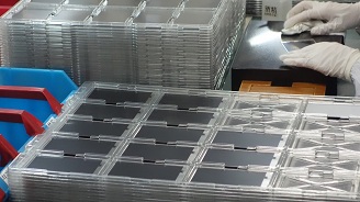 无尘车间,专门制作手机盖板。